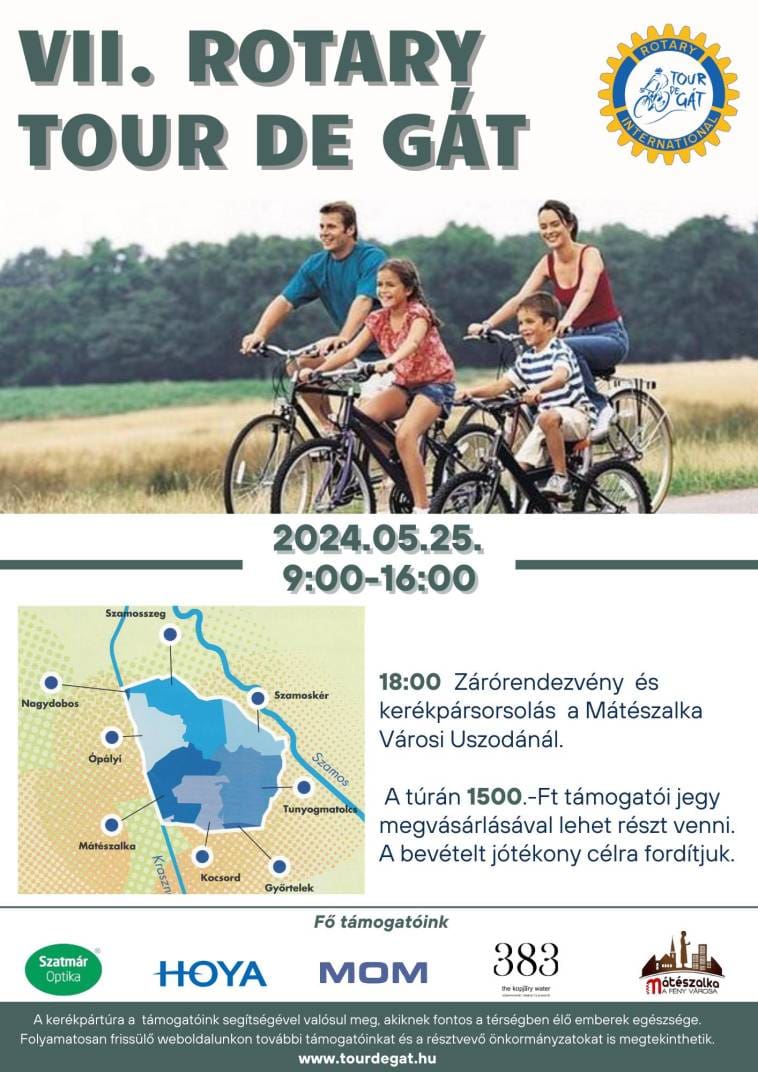 A mátészalkai Rotary Club tagjai már teljes erőbedobással szervezik a VII. „Tour de Gát” 40 kilométeres kerékpártúrát az új végig aszfaltozott gáton.
