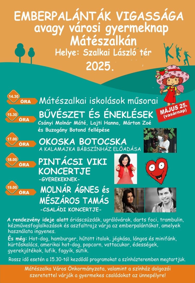 Május 25-én, vasárnap újra élettel telik meg a Szalkai László tér, hiszen megérkezik Mátészalka legvidámabb ünnepe – a városi gyermeknap, az Emberpalánták Vigassága.