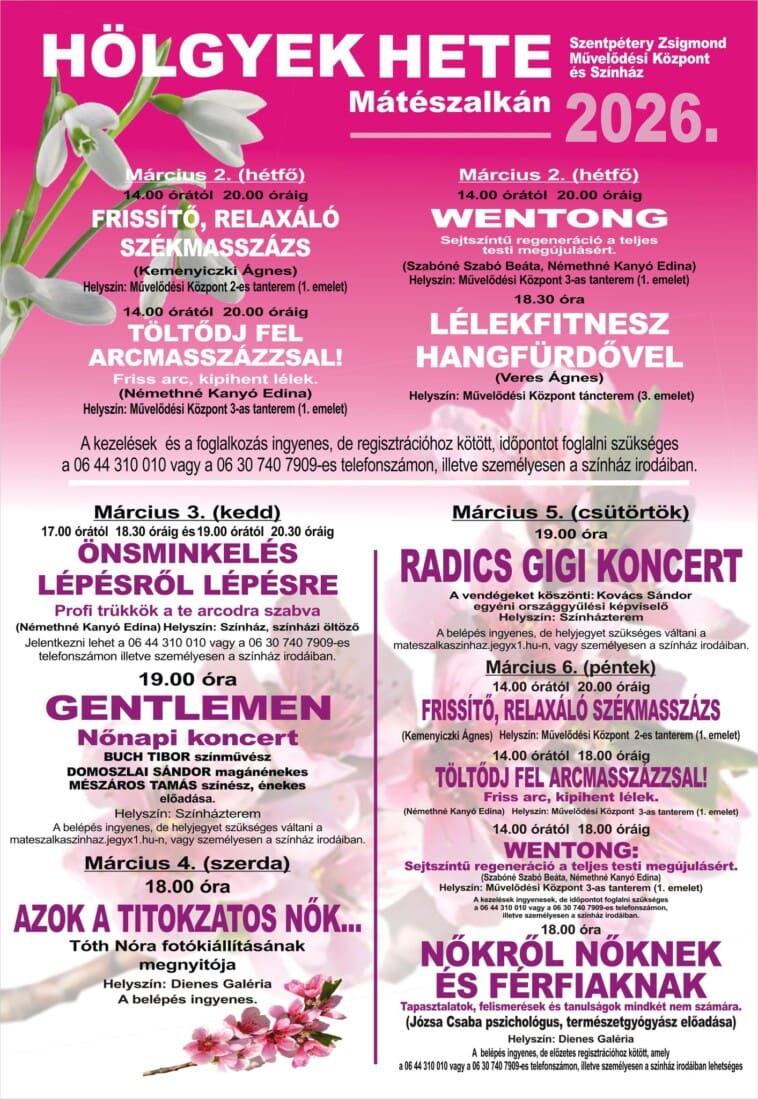 Az est fénypontja a Gentlemen nőnapi koncert, amely 19.00 órakor kezdődik a Színházteremben. A koncert elegáns, érzelmekkel teli zenei élményt kínál, méltó módon ünnepelve a nőket és a nőnapot.