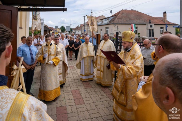 „Isten láthatatlanul, de tisztán érezhetően velünk volt ezekben a munkákban, ezekben az években” – tett tanúbizonyságot a házigazda, Molnár József nyírcsaholyi helyettes lelkész, aki a hálaadó Szent Liturgia után köszönte meg az elmúlt négy évben lezajlott felújítási munkálatok során kapott segítséget, az anyagi támogatást – az egyházmegye ráfordítását, a pályázatok összegeit és a közösség adományait –, valamint azt a sok fizikai munkát, melyet a képviselő-testületi tagok, hívek ajánlottak fel a közösség szolgálatára.